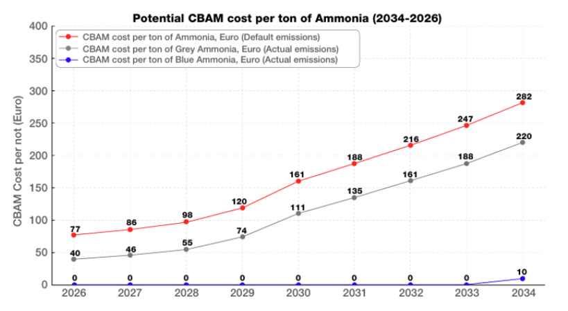 The UK regime, due in 2027, is designed to track the domestic carbon price in a similar way, with the explicit aim of preventing carbon leakage into the UK market. If London chose to mirror the EU factor schedule, UK import prices for ammonia, urea and DAP would follow a similar rising path, albeit scaled to the UK carbon price rather than the EU one.